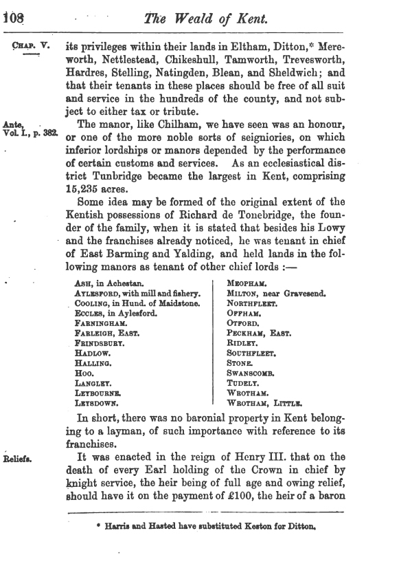 A History of The Weald of Kent with an outline of the History of the County to the present time, Volume II by Robert Furley, F.S.A. published by Henry Igglesden, 94 High Street, Ashford & John Russell Smith, 36 Soho Square, London in 1874