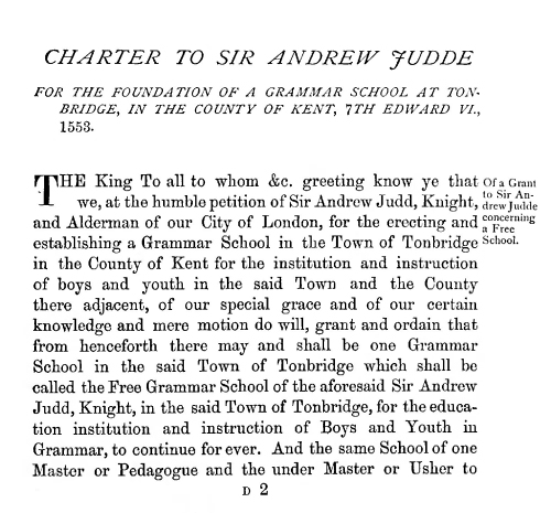 The History of Tonbridge School by Septimus Rivington, B.A. published by Rivingtons in 1869