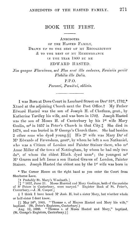Anecdotes of the Hasted Family