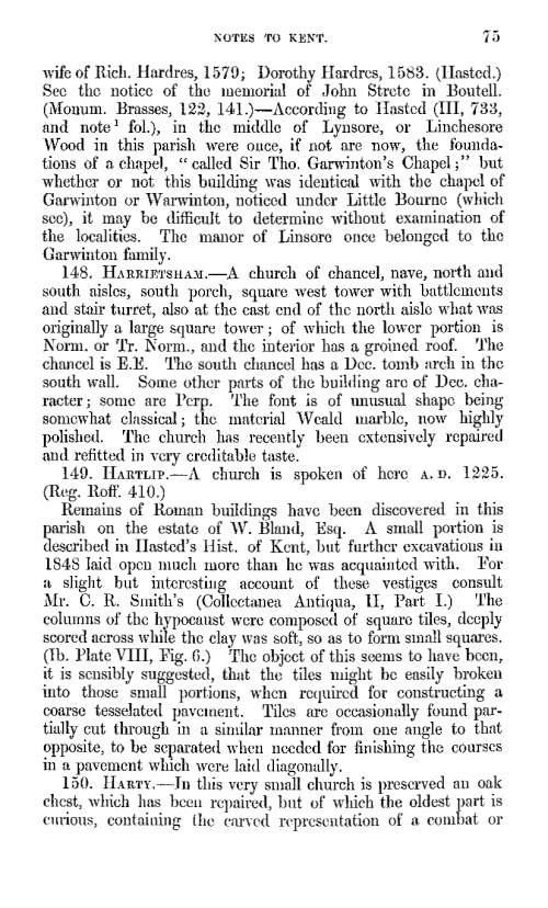 Notes on the churches in the counties of Kent, Sussex and Surrey by The Rev. Arthur Hussey, M.A. published by John Russell Smith, Soho Square, London in 1852