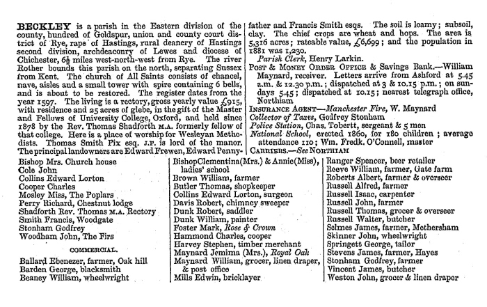 Kelly's Directory of Sussex by E. R. Kelly, M.A., F.S.S. published by Kelly & Co, 51 Great Queen Street, London WC in 1882